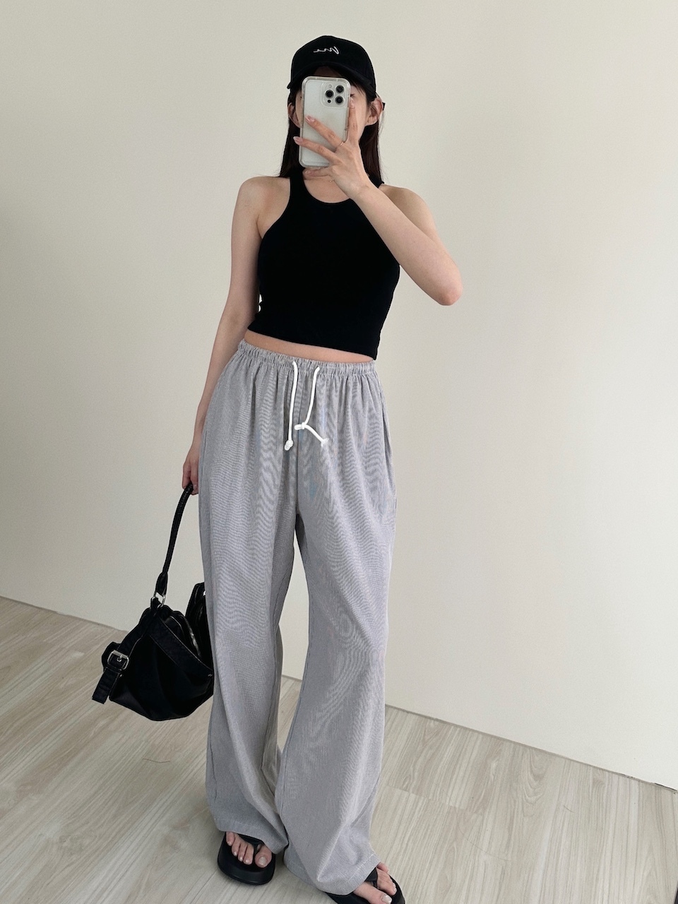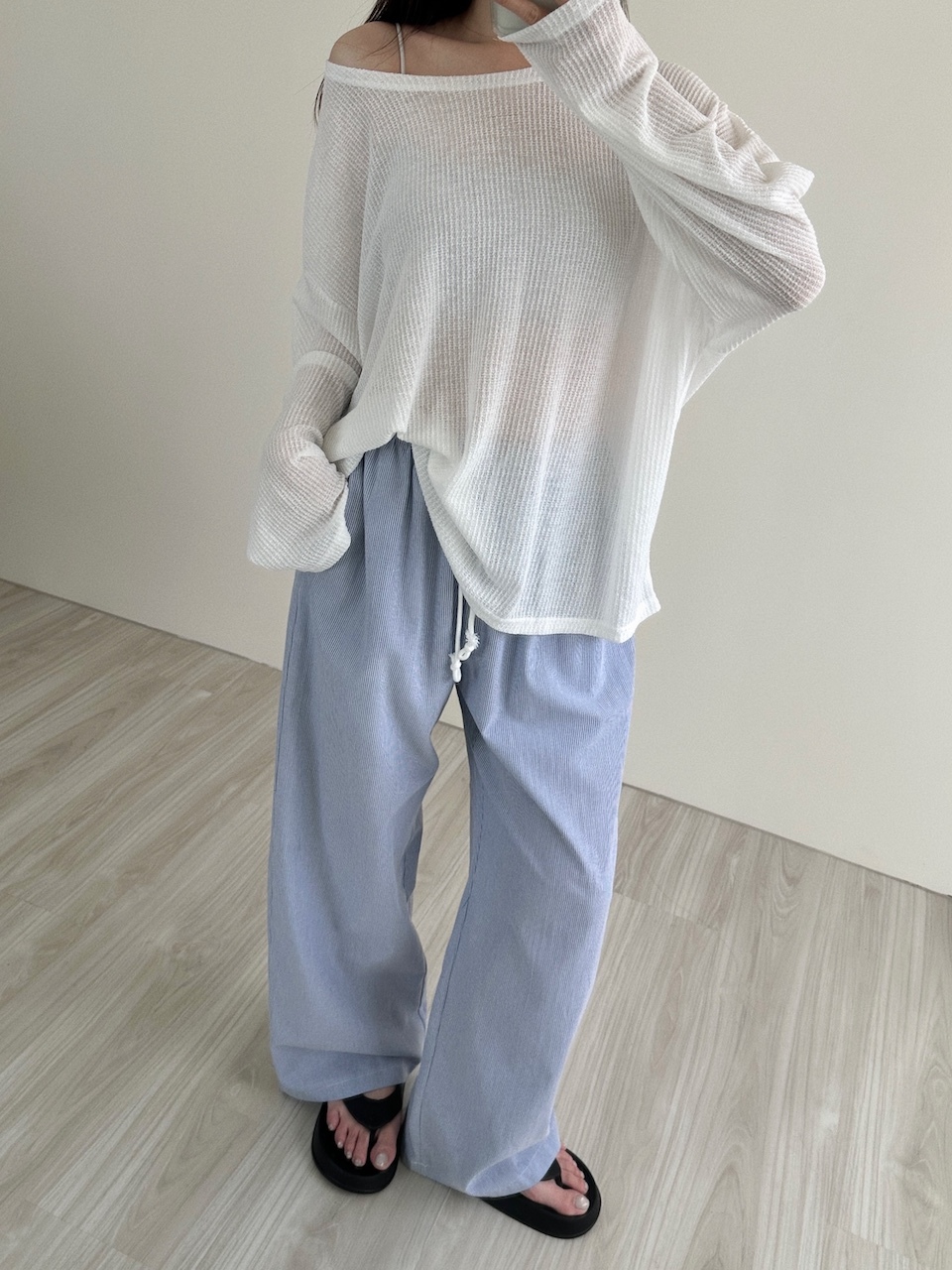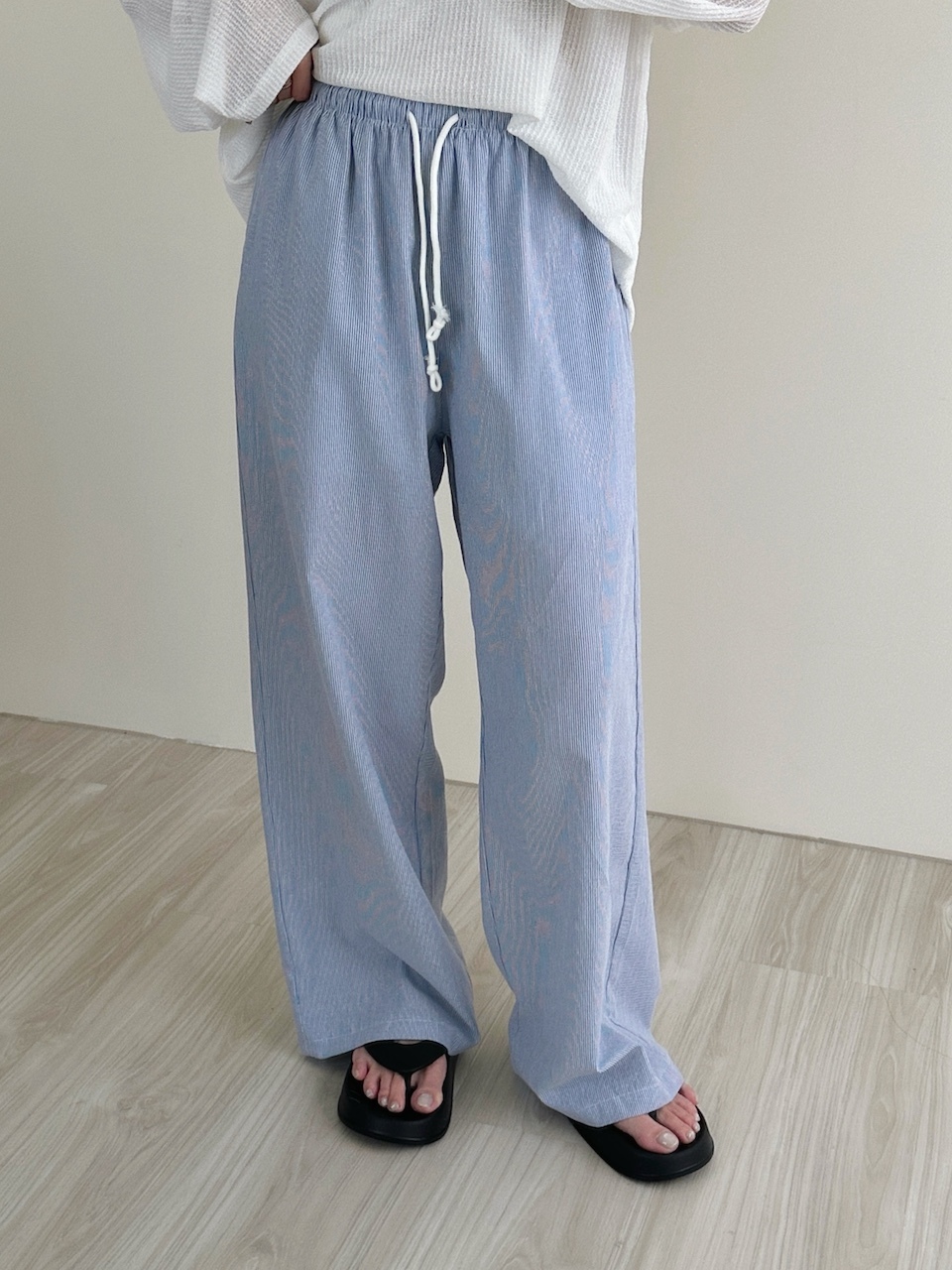 度假感慵懶直紋寬褲