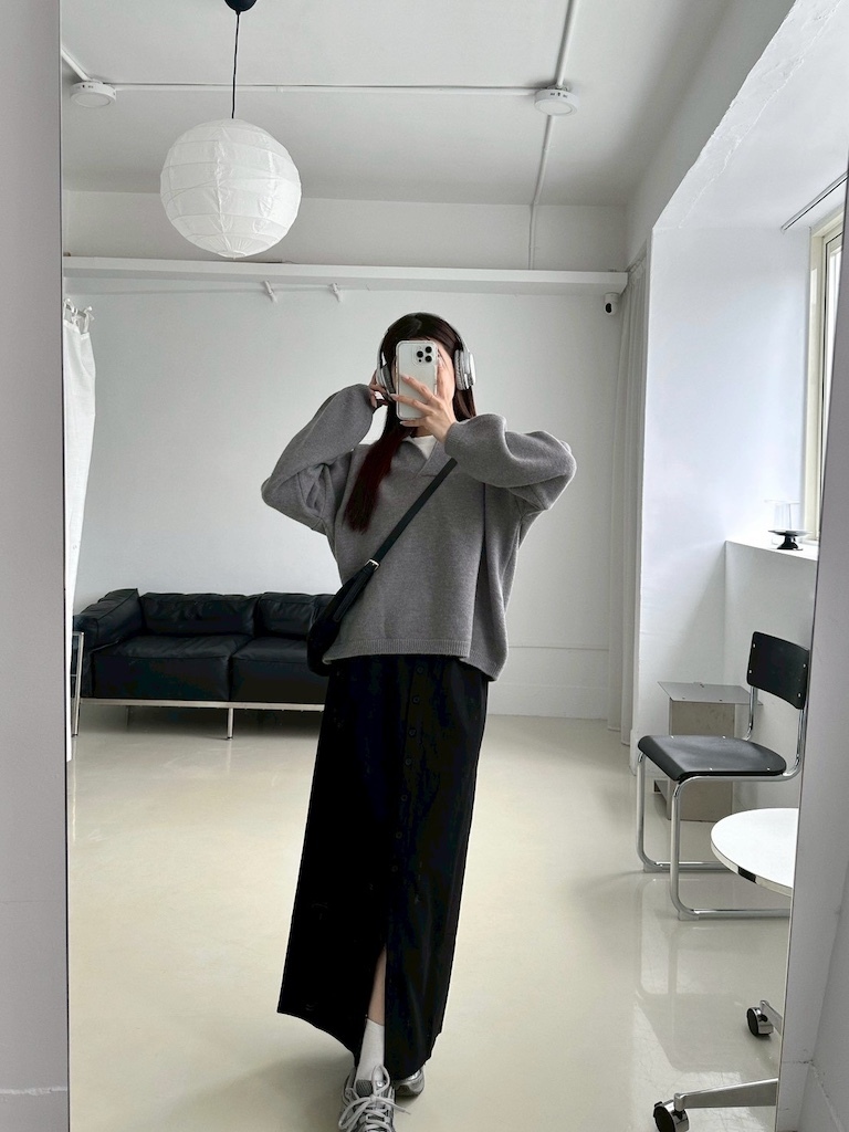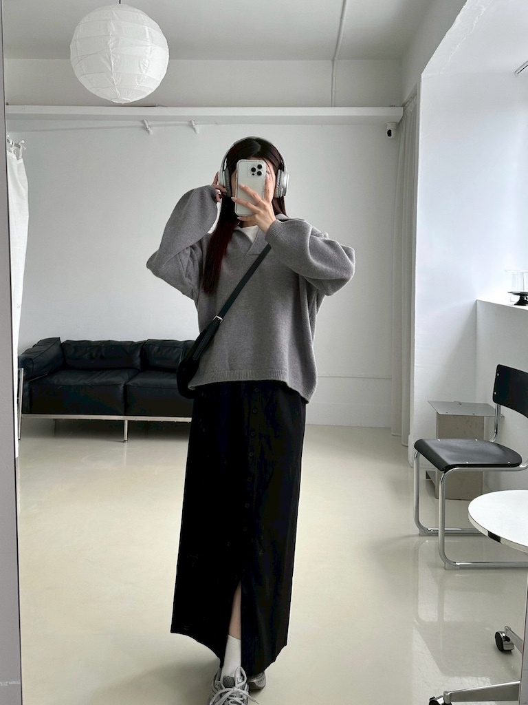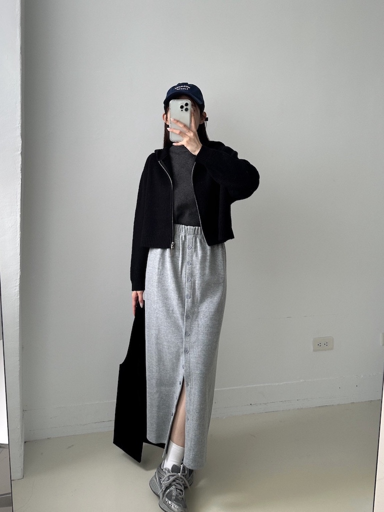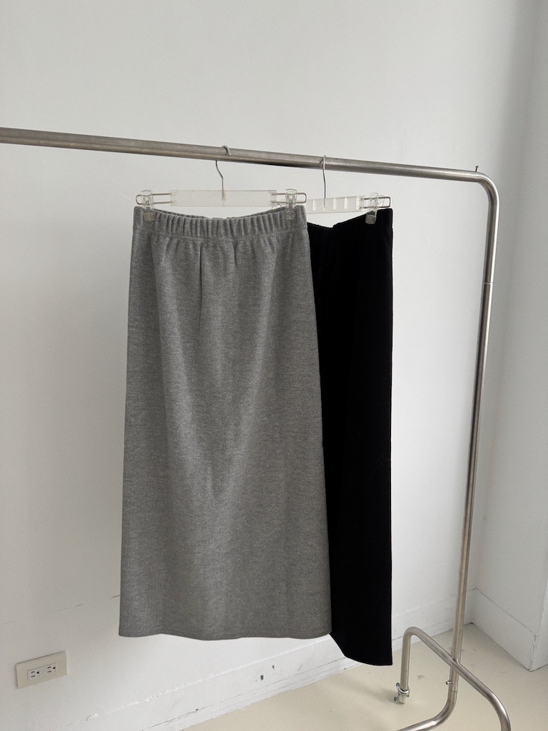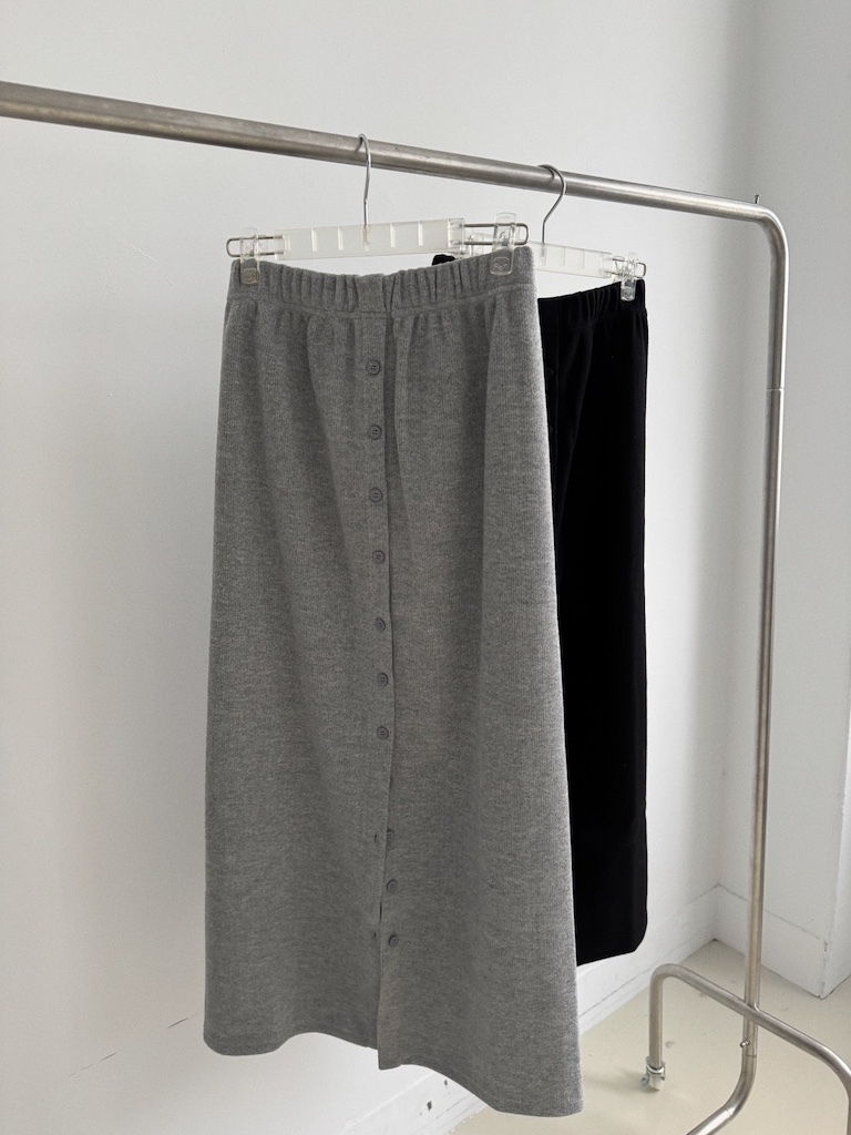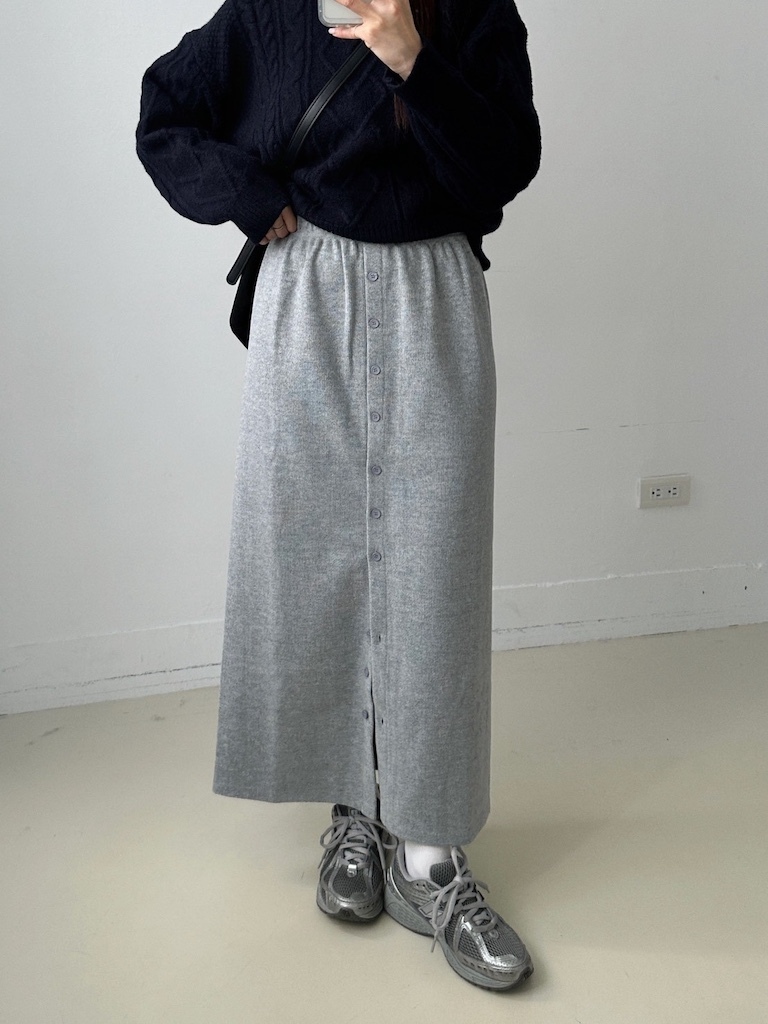 超修身毛呢排釦開衩長裙