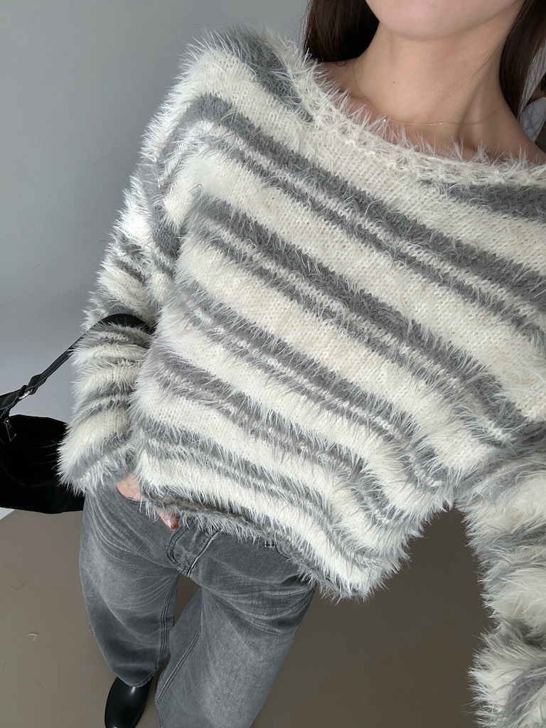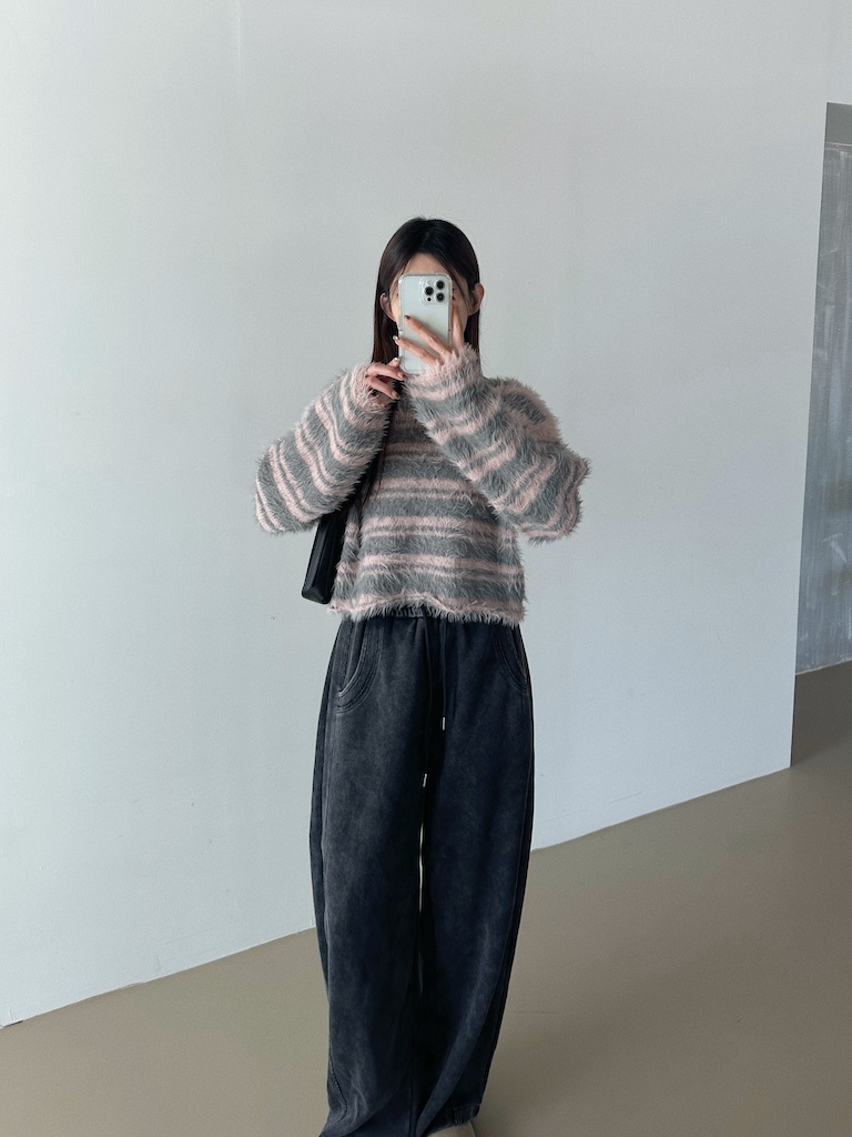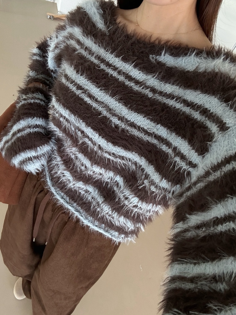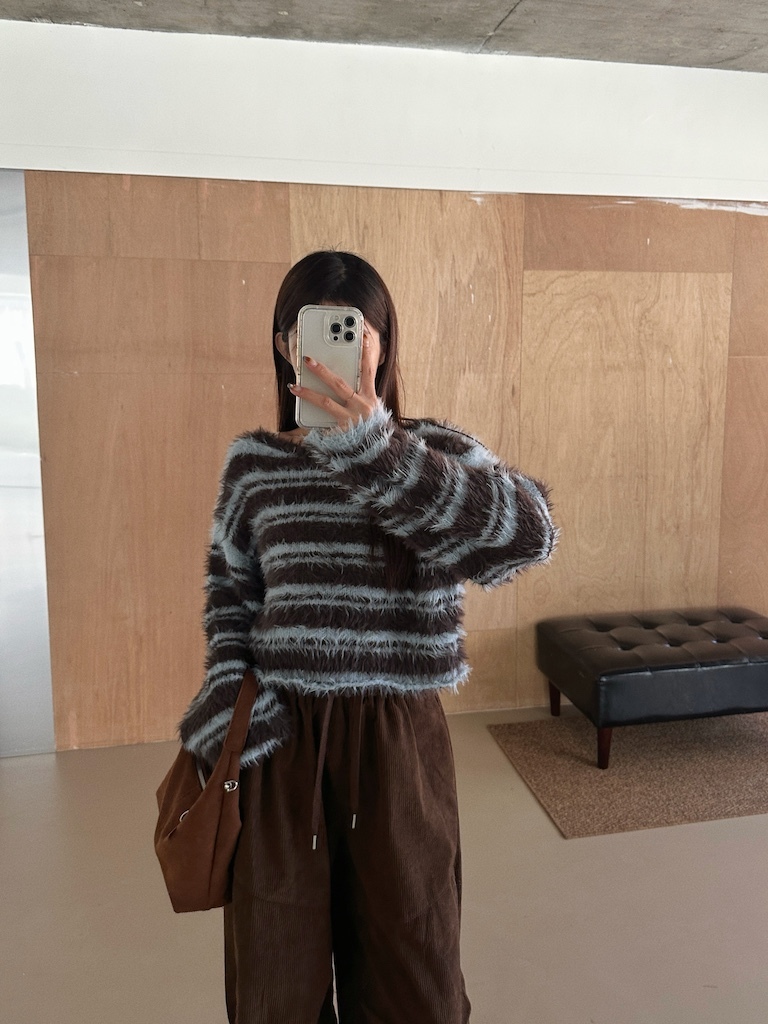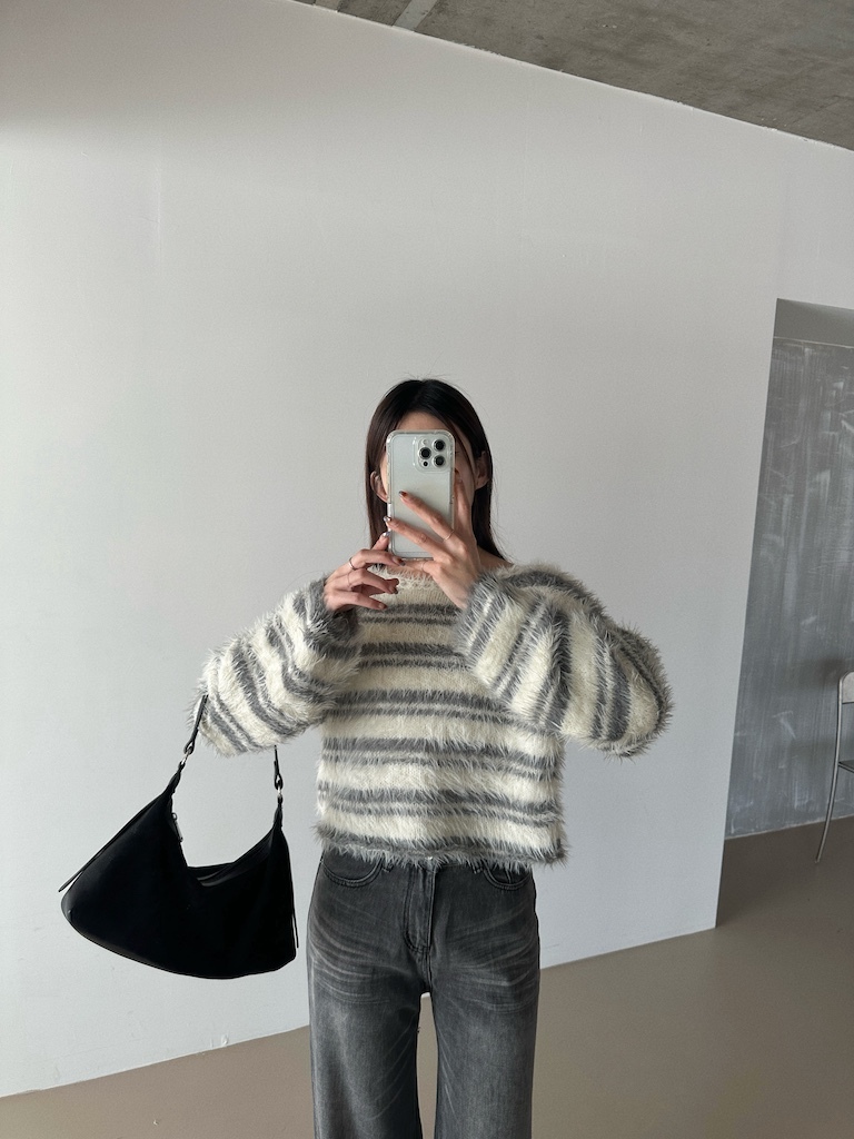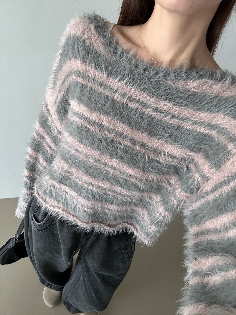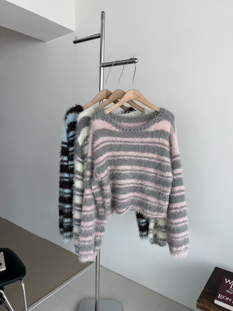 軟軟長毛條紋微短版毛衣