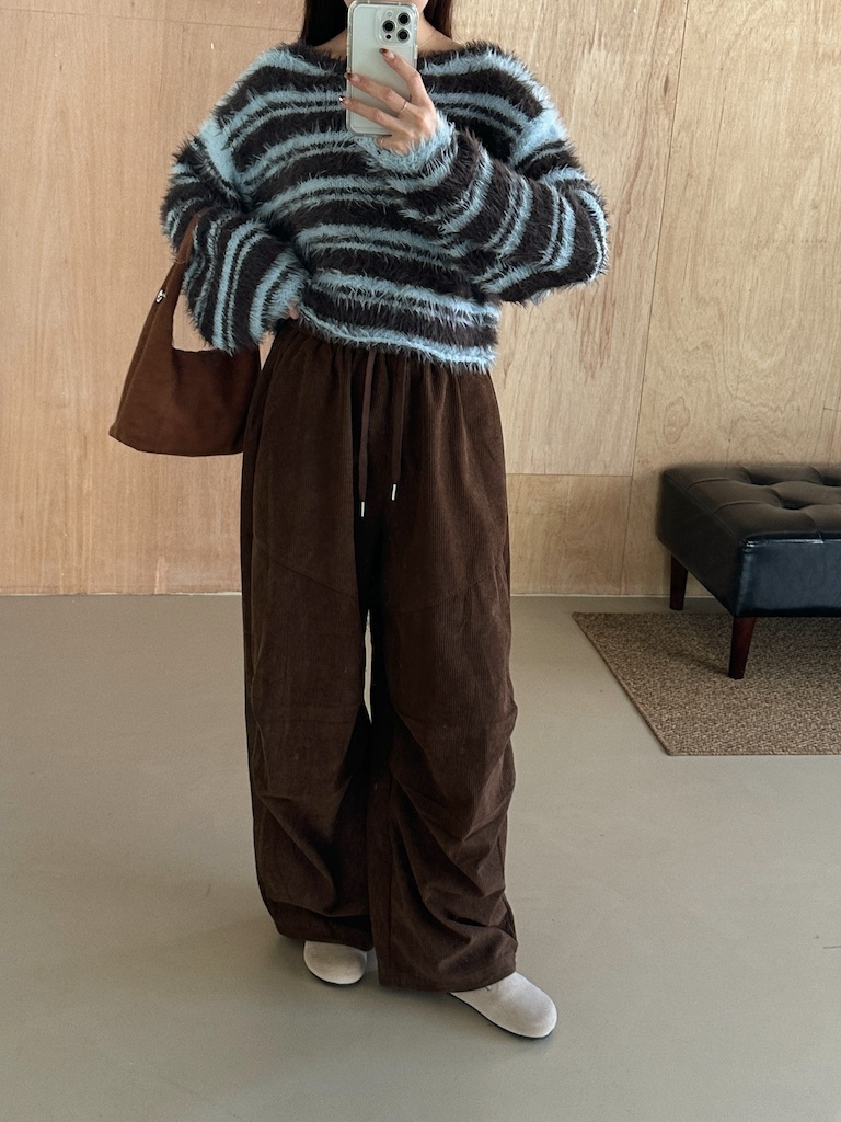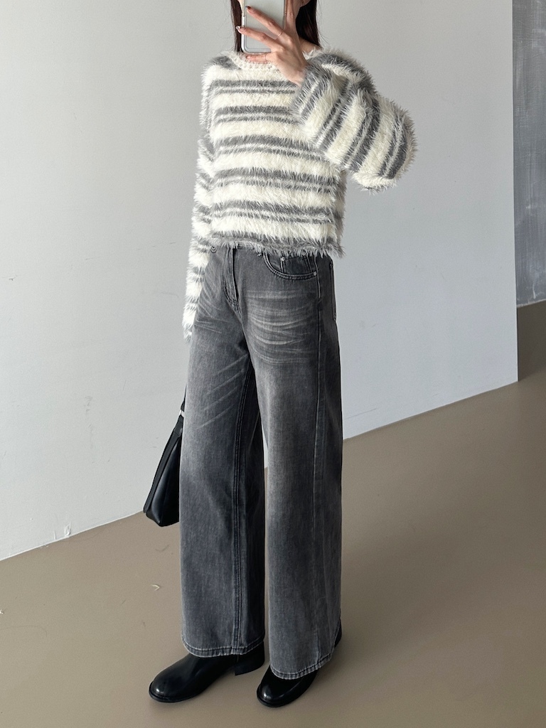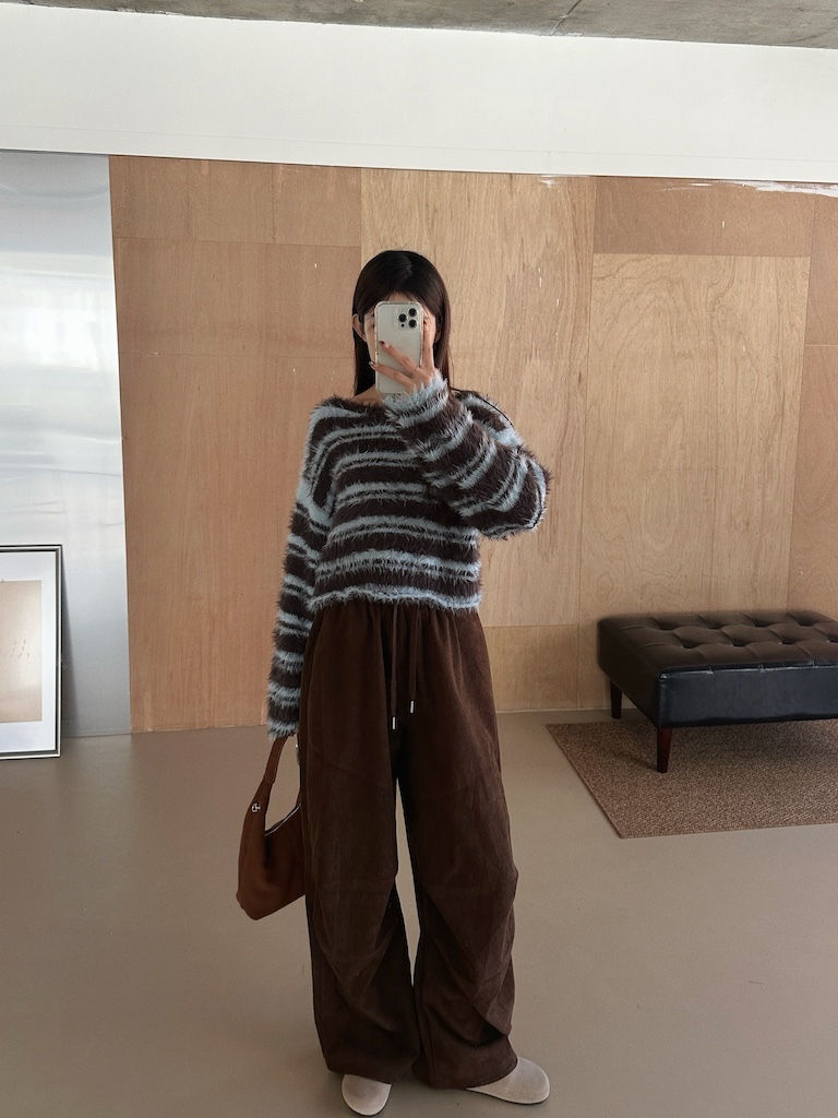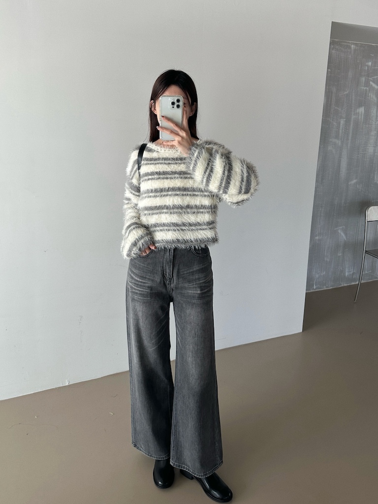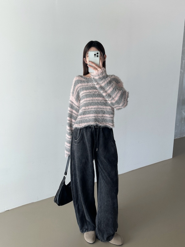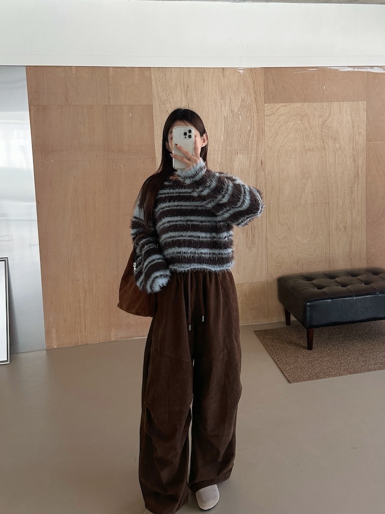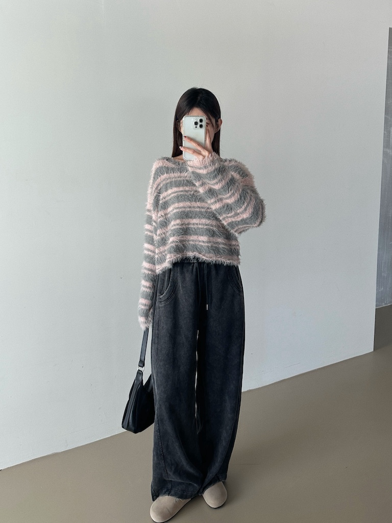 軟軟長毛條紋微短版毛衣