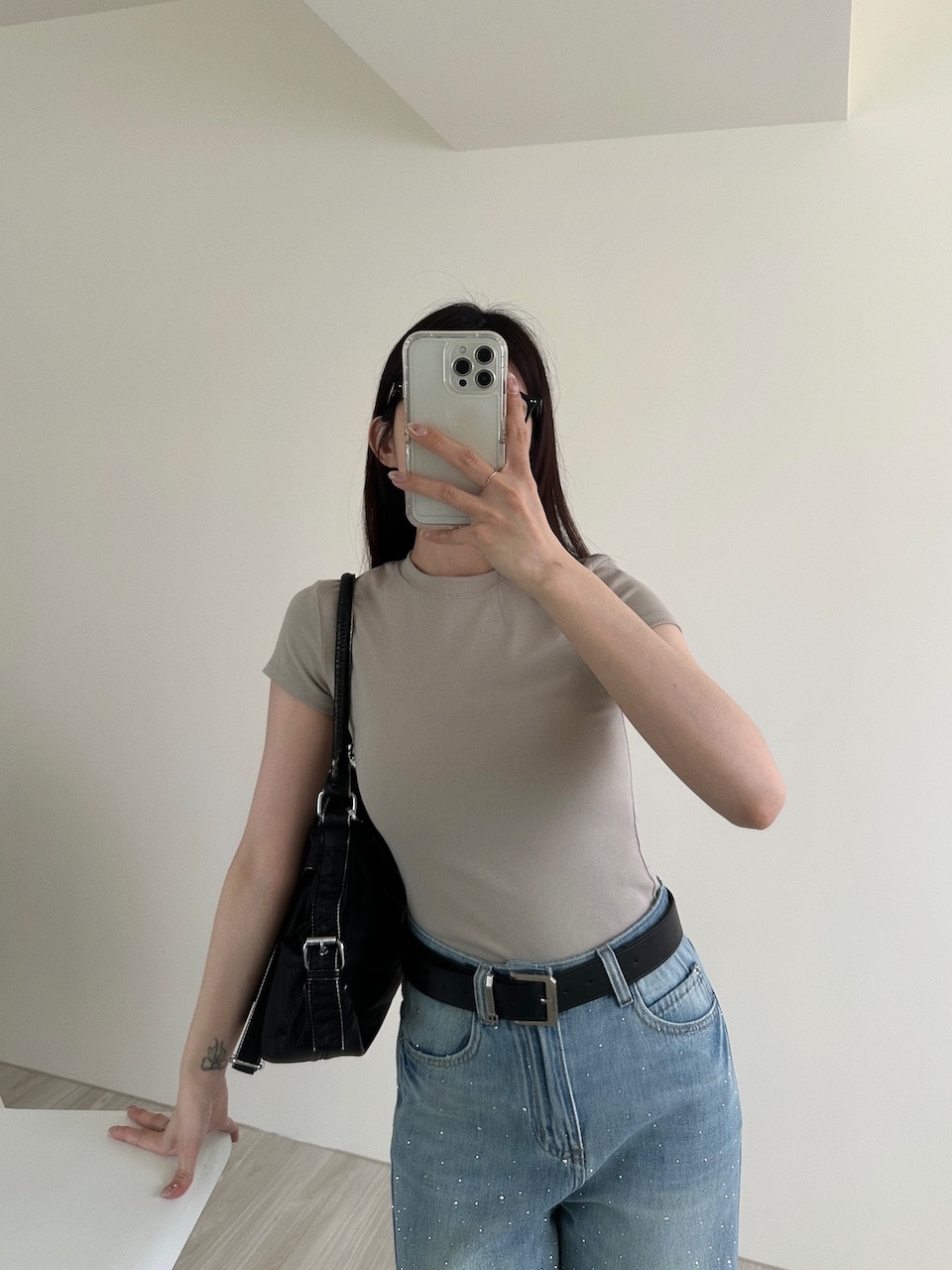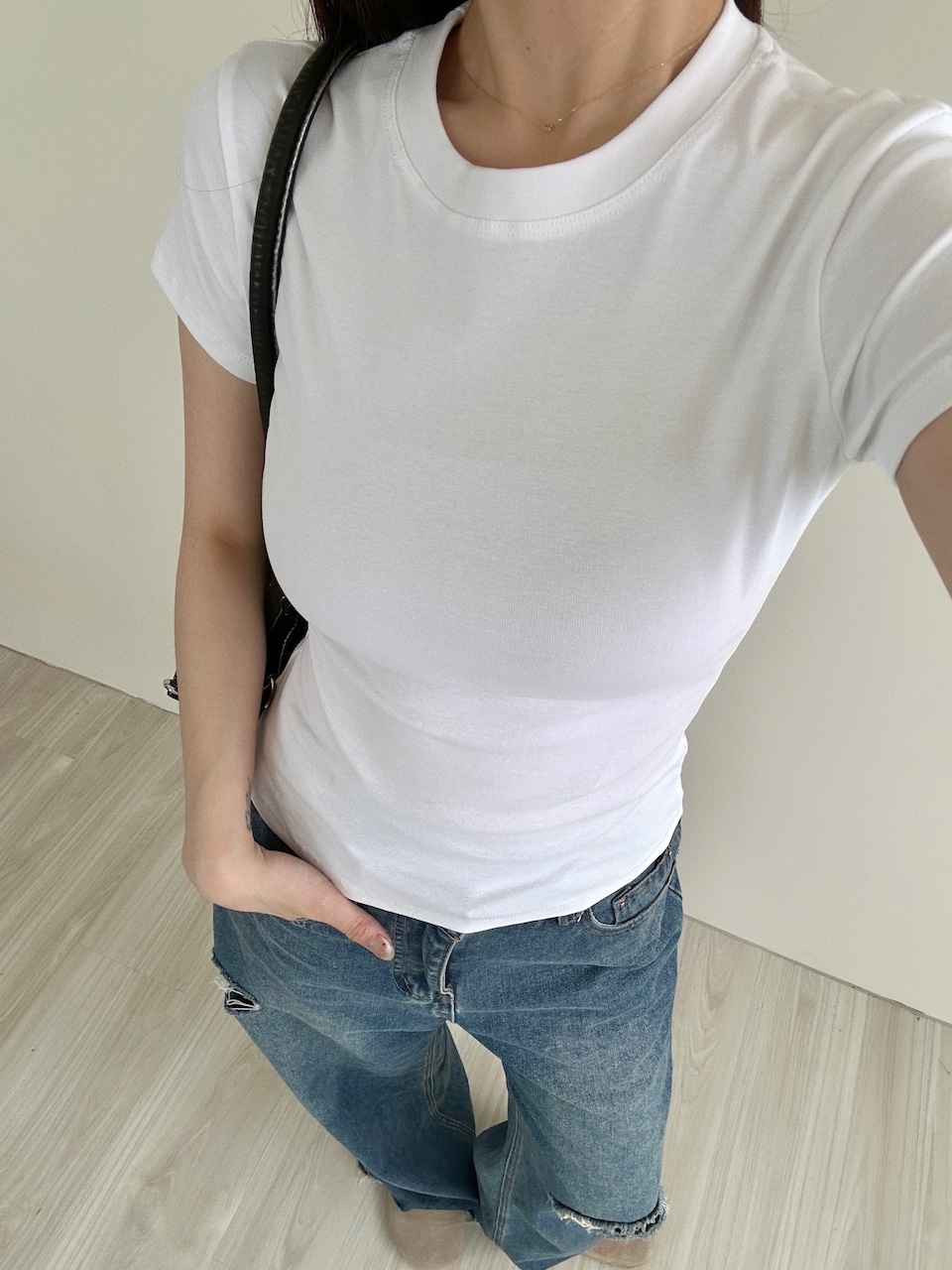 不想露肚肚微合身短袖素Tee