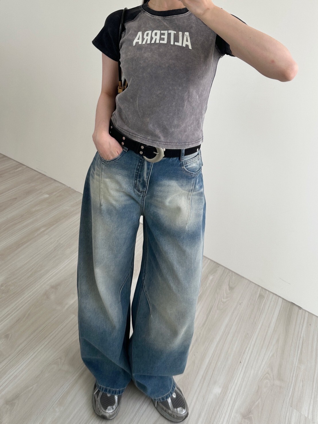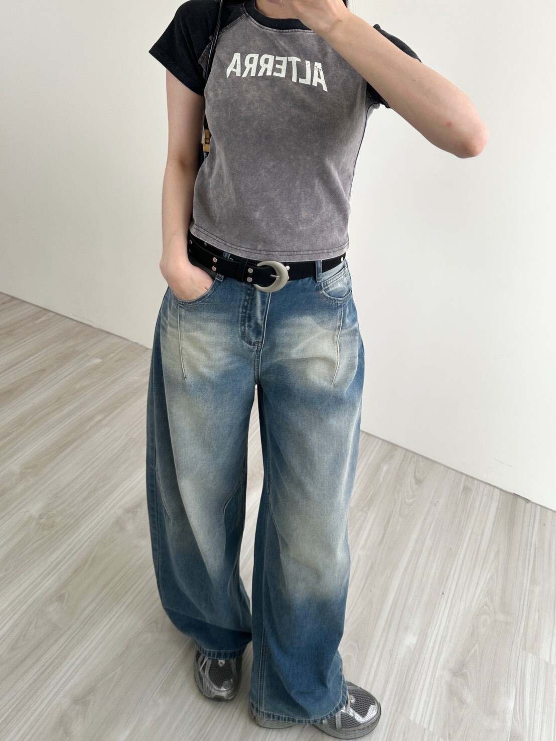 搭件寬褲就很街頭休閒風~